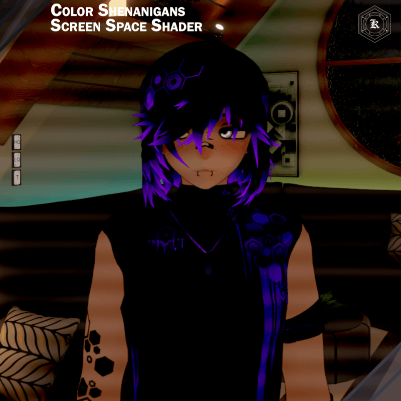 This is a simple screen space shader that lets you change various color properties. Think of it like some sort of post processing effect for your avatar/world.